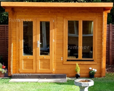 45mm Log Cabin 021 - Pent, Double Glazed, Large Panes