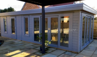 The width of the side walls can be up to 18' (5.4m). The length of the front wall can be up to 18' (5.4m). The price includes sliding double doors with sidelight windows, double glazing and 45mm thick wall logs. These substantial log cabins feature a durable and low maintenance one piece EPDM rubber roof surface. The patented corner assembly features profiled aluminium connectors with timber cover trims. Other features include superb quality joinery doors and a heavy duty timber floor. A choice of preservative treatments are available as options. Detailed fitting instructions are supplied for DIY self assembly. Low cost installation is available in many areas.