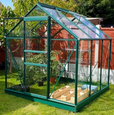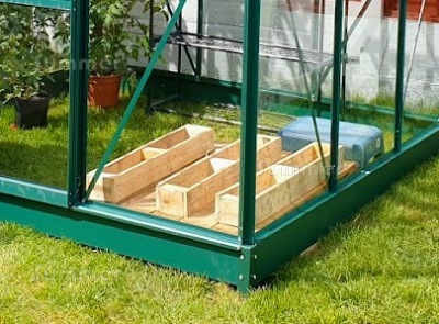 • Green powder coated aluminium greenhouse frame