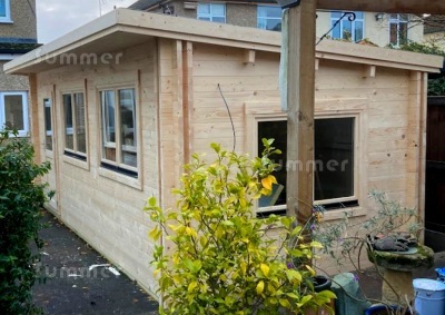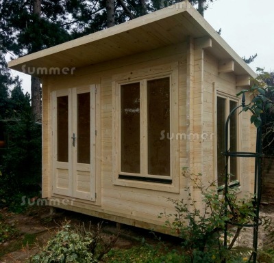 These high quality pent roof log cabins are available in sizes from 8'x11' to 13'x20' (2.5x3.3m to 4.0x6.0m) with a choice of 45mm logs or 140mm twinskin. The price includes premium double glazing, double hinged doors and a double opening front window with panoramic low level large pane glazing. Roof options include untearable roofing felt and a durable one piece EPDM rubber membrane. Other options include additional windows and floor and roof insulation. The great value price includes a heavy duty 19mm thick tongued and grooved floor. Detailed fitting instructions are supplied for DIY self assembly. Low cost installation is available in many areas.
