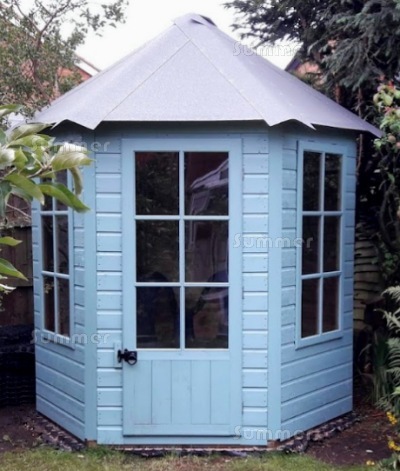 HEXAGONAL BUILDING SIZES: For ease of reference these hexagonal summerhouses are measured as a rectangle. The first dimension listed is the overall width from side to side and the second dimension is the depth from front to back. The overall width is measured at the widest point from corner to corner. The depth is measured at the narrowest point from wall centre to wall centre. Sizes are sometimes rounded to the nearest nominal size for ease of reading but the correct external wall sizes are listed alongside the price. These sizes do not include the roof overhang. Many other suppliers quote the overall roof size which is much larger. All sizes are approximate.