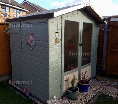 - All summerhouses include immersion treatment in light brown preservative. Further treatment is recommended soon after installation