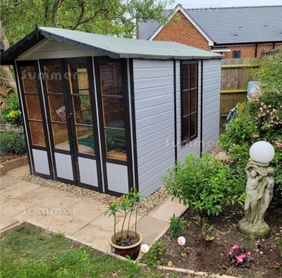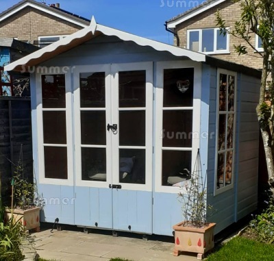 - 7'x10' summerhouse includes 2 fully opening Georgian style morticed and tenoned joinery windows in a side wall